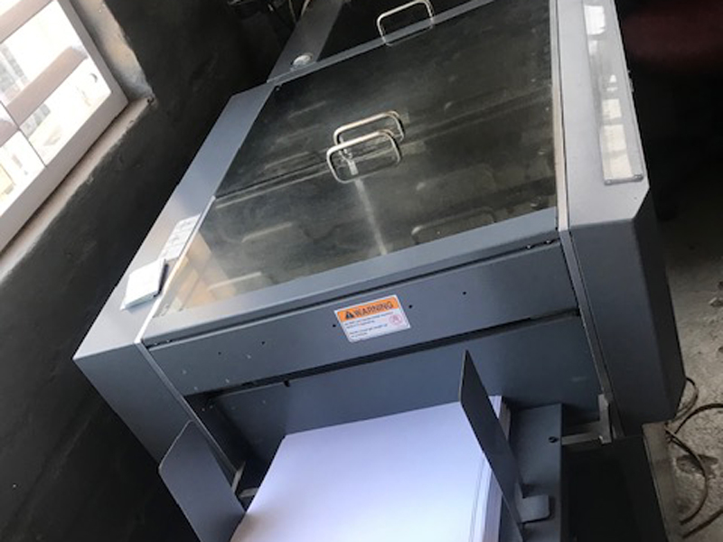 The Duplo DC-645 is the ideal finishing solution for digital color documents. Unlike any in the industry, the DC-645 slits, cuts, and creases documents in a single pass at an incredible speed of 26 sheets per minute. Unattractive white borders and cracked spines of digitally printed documents are problems of the past as the DC-645 produces a wide variety of professional quality, full-bleed applications such as business cards, greeting cards, invitations, brochures, pamphlets, catalogs, posters, book/CD covers, photographs, and more by simply loading the automatic high-capacity feeder.